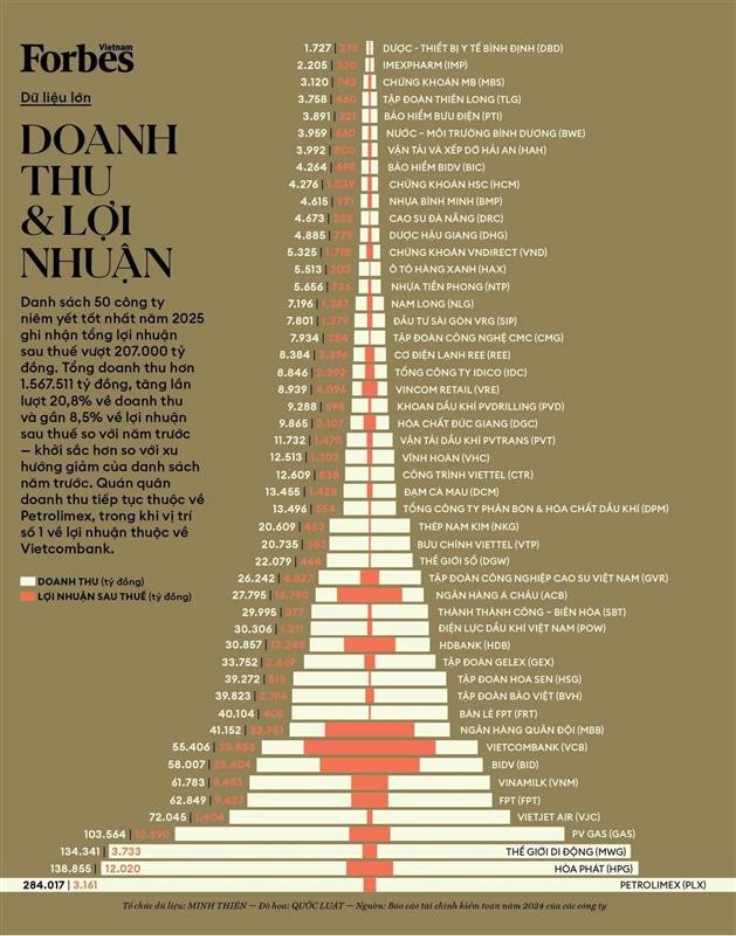 Danh sách 50 Công ty niêm yết tốt nhất 2025 được Forbes Việt Nam công bố